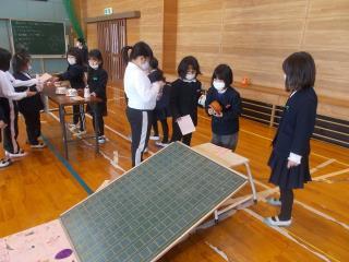 2年生が作ったおもちゃで1年生と一緒に遊びました。