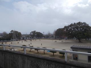 運動場の雪は解けてしまいましたが、