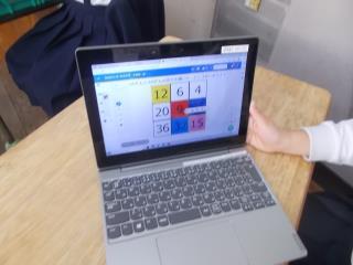2年生がタブレットを使って学習していました。