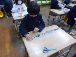 3年生が図工で動きおもちゃを作っていました。