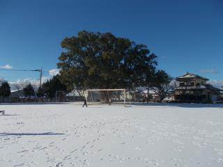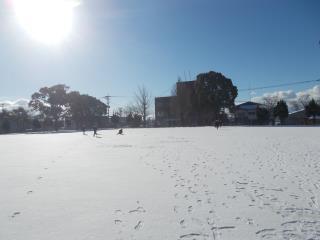 運動場の雪は解けてしまいましたが、
