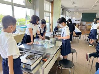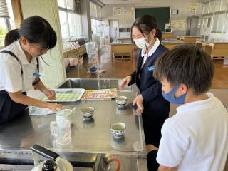 5年生が昨日、家庭科でお茶をいれる学習を行いました。
