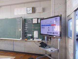 2年生は、九九をがんばっています。スクリーンに大きく映し出される九九を一瞬で唱えます。繰り返すうちにどんどんスピードアップして、楽しそうです。しっかり覚えようね!