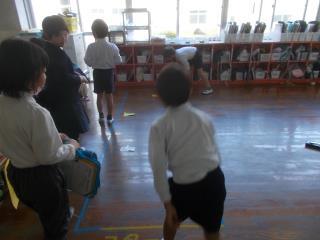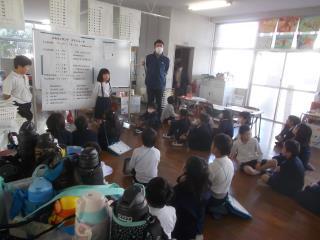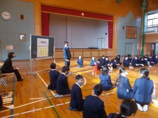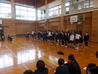 朝活動は児童集会で、保健体育委員会の発表でした。