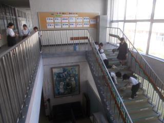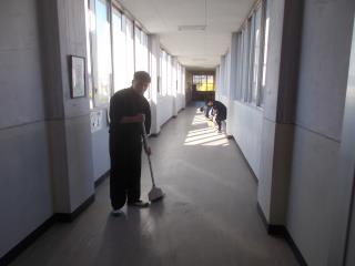 縦割り班で挨拶をし、黙想をして掃除を始めます。