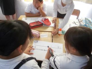 整数の表し方を参考にできるので、子どもたちもしっかり考えることができました。