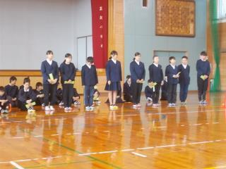 さすが中学生、学校にくるとすぐに大きな声であいさつをしてくれました。