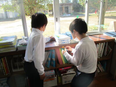 5年生たちがみんなで取り組んでいることは「伝記」を読むこと。私も小学生の頃に「ヘレンケラー」を読んで感動したことを思い出しながら、一緒に図書室へ行きました。