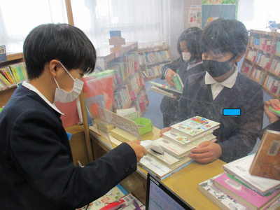 冬休みに読む本5冊を最初に借りたのですが、貸し出しの手続きをするときの本の並べ方に「思いやり」を感じました。バーコードを読み取りやすいように、少しずつ本をずらしているのです。高道小の伝統でしょう。嬉しいですね。5冊借りたあとは、自分で選んだ伝記を集中して読んでいました。今日は誰と出会えたのでしょう。「ジャンルを決める」読書の幅を広げるよい取組です。