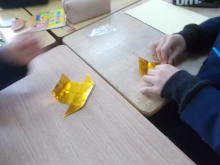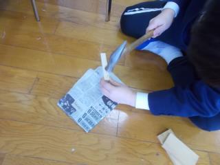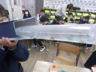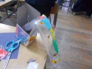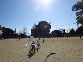 3・4校時に、1年生がたこ作りとたこあげをしました。