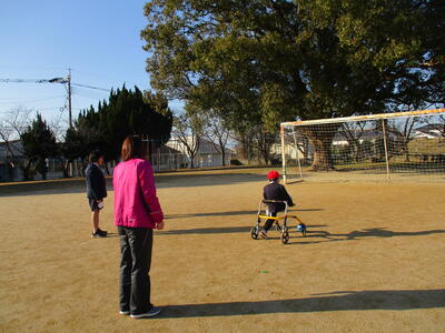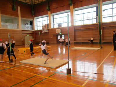 写真は、16日(火)あおぞら学級合同授業、みんなでサッカーを楽しみました。サッカーゲームを楽しむことを通して、体を動かすこと、ルールを守ってプレイすること、友だちと力を合わせること等の大切さを学んでいきます。19日(金)には、3年生たちが高跳びに挑戦です。まずは堅いバーではなく、ゴムを飛びます。たくさんのコースを用意して、自分で挑戦する高さを決めて練習します。友だちと声をかけあって、賑やかに楽しく一生懸命に取り組んでいました。