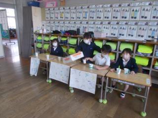 1年生は保育園の子どもたちを、お店でもてなしました。