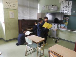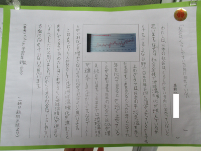 4年生は係活動が充実しています。22日には、絵本の読み聞かせをしていました。お家の人たちに読んでもらっているように、上手に読み聞かせをしていました。きっとたくさん練習したのでしょうね。拍手です!! また、5年教室前には、国語の学習で仕上げた作文が掲示されていました。データをもとに自分の考えを展開していく内容で、さすがは高学年。力作ぞろいです。掲示してあることで他の学年も学ぶことができました。