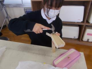 かなづちでくぎを打って、自分の好きなものを作ります。
