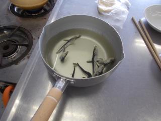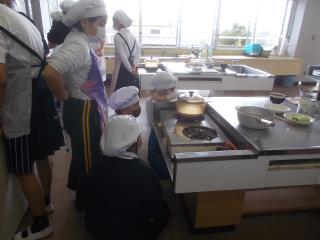 5年生が家庭科の学習で、ご飯と味噌汁を作っていました。
