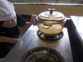 透明なお鍋なので、ご飯が炊ける様子がよく分かります。