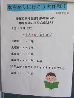 図書委員会の取組で「本を借りに行こう大作戦!」が行われています。