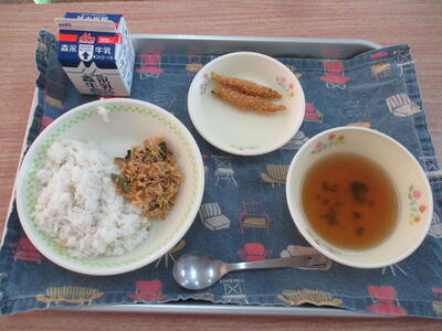 今日の給食のおかずは「あおさ汁、白身魚フライ、レモン和え、たこめし」でした。あおさ・魚・レモン・たこ飯・・・天草地方の特産物ですね。郷土の料理を味わう月に1度の「ふるさとくまさんデー」でした。美味しかったですね。