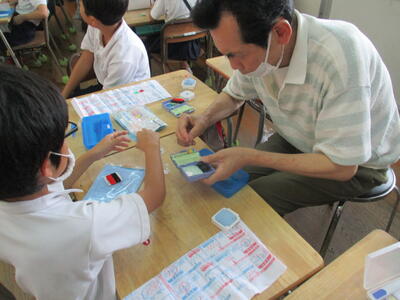 3週連続で地域の先生方にきていただき、5年生たちが針と糸の使い方を教えていただきました。今日はボタン付けです。これまで教えてもらった先生に班に入っていただき、引き続き教えてもらいました。もうすっかり先生と親しくなった子どもたちは、先生方の姿が見えると笑顔、握手を求め、挨拶を交わし、裁縫の学習に入っていきました。回を重ねたことで5年生たちの針の運び方がずいぶん滑らかになってきました。今日はボタン付けに挑戦でしたが、困ったところを教えてもらい、一針一針ていねいに縫っていました。できるようになると、自信がつくものです。よかったね、5年生のみなさん。地域の先生方、今日も優しく教えていただいて、ありがとうございました。