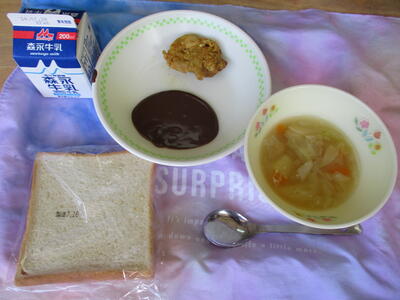 今日の給食のおかずは「海のお野菜スープ、じゃがいものケチャプ煮、白玉ヨーグルト、コッペパン」でした。給食のパンは、小麦の香りと味がしっかりとして美味しいです。子どもたちもパンの日を楽しみにしています。