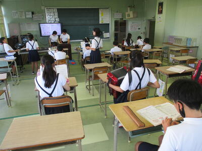 6年生たちは、西村さん(地域学校協働活動推進員)のアドバイスをもらいながら風景画の下書きを進め、今日は人物も加えていました。また、先日は音楽専科の藤岡先生との合奏に取り組んでいました。担任の先生はもちろん、美術や音楽などの専門性の高い先生に学ぶことでいろいろな技を獲得し、意欲もグンと高まります。いつもありがとうございます。