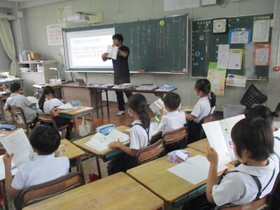 7月のPTA読み聞かせの日でした。夏休み前ということで、どのお話にするか考えに考え抜かれた絵本を読み聞かせしていただきました。おうちの人が語ってくださるお話の世界に浸る時間、昔々の世界にタイムスリップしたり、ファンタジーの世界に遊んだり、本は一瞬のうちに、子どもたちの想像の翼を広げ、いろいろな世界へと誘ってくれます。子どもの頃にいろいろな世界に出会ってほしいですね。そんなきっかけづくりをしていただいた保護者のみなさま、ありがとうございました。