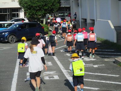 夏休み前、今日は最後の登校の日となりました。朝から強い日差しが照りつけましたが、たくさんの人が登校班のみんなとがんばって歩いてきました。お家人の見守り、地域のパトロール隊のみなさんのおかげで、事故ゼロが継続できています。毎日、本当にありがとうございました。夏休み期間中も、地域でのくらしの様子を見守っていただきますようお願いします。