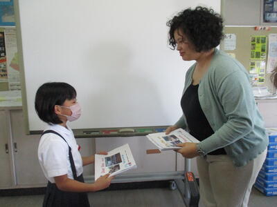シェイ先生とのお別れの日ということで、授業中や休み時間に、涙・涙の子どもたちの姿がありました。「日本は私にとって、新しい国。住むことは難しかったけど、みんなに英語を教えることは有意義だった。みんな英語が上手になりました。すばらしいです。将来、もう一度会えるといいですね」とお別れの言葉をいただきました。ウクレレを弾きながら英語の歌も聴かせてくださいました。英語を教えてもらった3~6年生はお礼の手紙を書き、渡すことができました。とっても嬉しそうなシェイ先生の笑顔。いつかまた会える日が来ることを楽しみにしています。どうぞお元気で!!ありがとうございました。