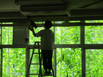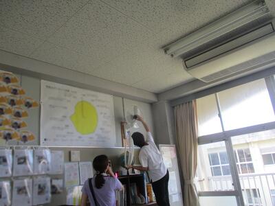 今週に入り、先生たちは校外の研修会に行くことが増えてきました。また、月田先生と松尾先生は、毎年このタイミングで空調設備のクリーニングをしてくださいます。長期休業中だからできる作業等を少しずつ進めていきます。