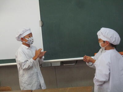 給食時間中には、図書委員さんが「しおりコンテスト」の入賞者に賞状を贈呈しました。放送委員さんは、楽しい給食になるようにクイズを出していました。給食後の片づけを、給食委員さんが小北先生とがんばっていました。一人一人が役割をもち、責任をもって取り組んでいることで、学校生活が楽しく豊かなものになっています。みなさん、ありがとう!!