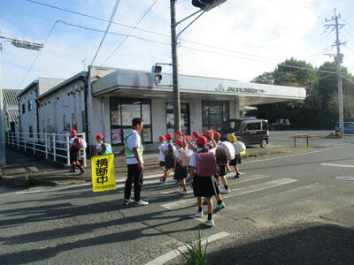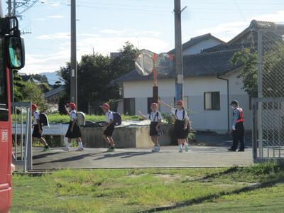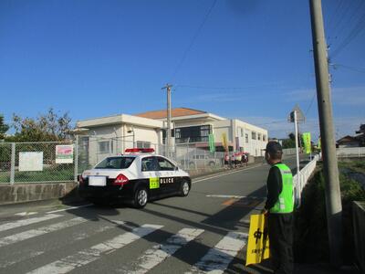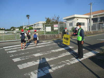 秋の交通安全運動期間中、朝の登校指導に瀬崎さんと高島さんが来てくださいました。「おはようございます」とあたたかく挨拶を交わし見守ってくださいました。鍋駐在所からもパトロールに来てくださって、多くの方々のおかげで事故ゼロが続いています。ありがとうございます。