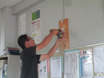 6年教室の扇風機が故障したため、放課後、教頭先生が交換の作業をされました。「大丈夫ですよ、できますよ」と作業を始め、1時間もかからないうちに2台とも交換完了。さすがです!!花づくりはもちろん、壊れたものの修理も何でもされるので、困ったときはみんな教頭先生を頼りにしています。