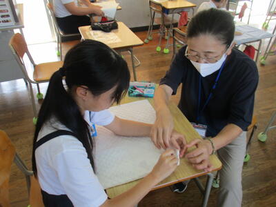 授業を終えて感想を伺いました。「ミシンの指導と聞いて教えることができるか不安だったが、子どもたちと一緒にできてとても楽しかった」「自分にできるお手伝いができて楽しかった」「子どもたちと一緒に勉強させてもらうこと、ふれあい、楽しい時間だった」などなど、みなさんから楽しかったとの言葉をいただくことができ、ありがたい限りです。子どもたちにとって地域の先生方とのふれあいは、やさしく教えてもらった!とあたたかい思いと共に記憶に残り、心を支え続けてくれるものだと思います。今日もありがとうございました。