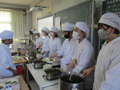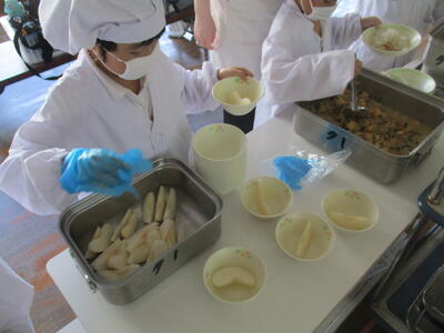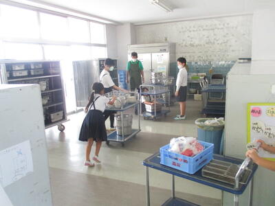 写真は6年生たちの配膳の様子です。手際のよさに感心します。入学以降毎日続けてきた成果!!