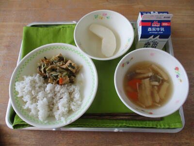 今日の給食のおかずは「豚汁、大豆と豆腐のフライ、チンゲン菜のごま和え」でした。残暑のせいか、残食が多くなりがちだった9月。少しずつ涼しくなってきたので、しっかり食べて元気アップにつなげたいです。今日も美味しかったです!