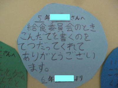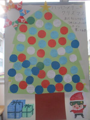 5,6年生たちが所属している委員会活動。給食委員さんは毎日の献立を知らせてくれています。運営委員さんは「ハッピーメリークリスマス」を企画し、友だちにしてもらって嬉しかったことを書いたカードをツリーに飾り付けてくれています。学校生活が豊かになるように、任された仕事に責任をもち、アイデアいっぱいに取り組んでくれていて、本当に頼もしい高道の子です。