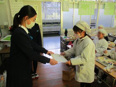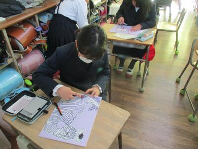今日も各教室で楽しく学ぶ子どもたちの姿がありました。1年生はお花紙で絵を描きました。2年生は書き初め展に向けた練習、3年生は版画の進め方を熱心に聞いています。4年生は版画を進めていました。最後の日までしっかり学んだ子どもたち。給食の時間には、環境委員会さんから無言掃除をがんばった学年の表彰がされました。