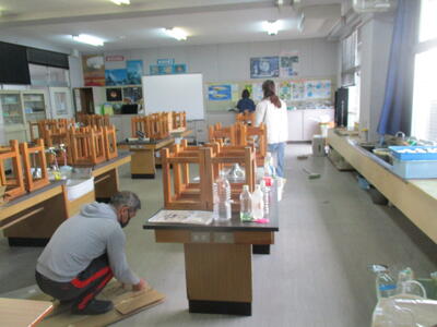 冬休みが始まり3日。みなさん、元気に過ごしていますか。先生たちは、理科室と図工室、家庭科室、倉庫を中心に大掃除をしました。みんなで片付けて活動がしやすくなりました。きれいになると気持ちがよいものですね。あおぞらの先生方は、冬野菜の間引きもしました。年明けは、みんなで子どもたちを迎える準備をします。