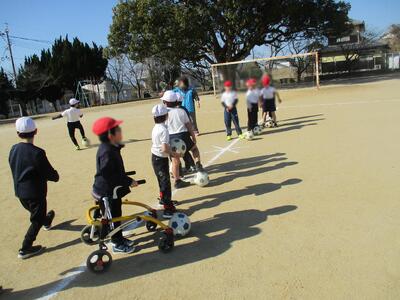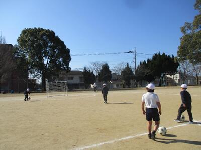 朝晩は冷え込みますが、日中はあたたかな陽ざしに恵まれた1日でした。2年生たちは、体育でボールけりゲームを楽しみました。パス練習とシュート練習のあと、赤対白でゲームをしました。「声をかけ合って仲良くできたのは花丸でした」と市田先生からほめられて嬉しそうでした。