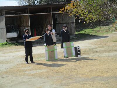 休み時間には、保健体育委員会さんの企画でじゃんけんゲームがありました。休み時間に空気の入れ換えをするために窓をあけることを習慣化することをねらったもので、中庭や前庭に出て、教室やベランダにいるみんなに向かって呼びかけ、じゃんけんゲームをしました。楽しい企画です。