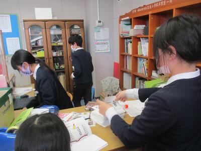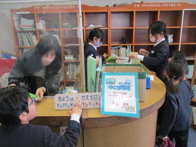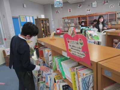 昼休みの時間、図書室に行くと、塩﨑先生と一緒に仕事をしている図書委員さんたちの姿がありました。返却された本を元の本棚に戻す、貸し借りの手続き、低学年の子どもたちの貸し出しのお世話などなど、それぞれに黙々と取り組んでいて感心しました。こうしてかげで仕事をしている5,6年の委員さんたちのおかげで、みんなが学校生活をスムーズに送ることができているのです。みなさん、いつもありがとう。
