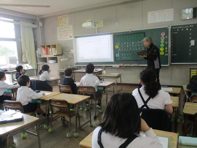 さて、今日は米田先生とALTのタビーナ先生との外国語の学習です。6年生たちは、自分の名前や好きなものを紹介し合う活動に取り組んでいました。英語を使ってどんどんコミュニケーションをとる姿に、学習の積み重ねで力がついていると感じました。5年生たちはアルファベットの確認です。みんなで声をそろえて言えたので、列ごとにどんどん言う練習をしました。しっかり耳で聴いて、真似して発音をすることで慣れていきます。子どもたちの吸収力には、いつも驚かされます。