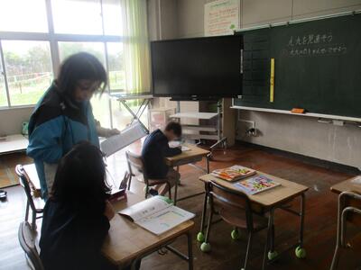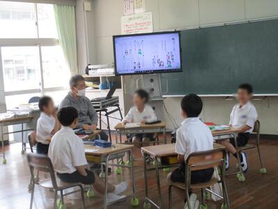 どの学年、学級も、子どもたちが先生・友だちと一緒にはりきって学校生活を送る様子がみられます。あおぞら1組さんは、調べた数をわかりやすくするために表やグラフに表すことを学んでいました。あおぞら2組さんは、3・4年生合同で言葉を豊かにする連想ゲームを楽しんでいました。4年生たちは、全員で音楽に合わせての身体表現にチャレンジしていました。楽しい中にも真剣な様子が伝わってきました。