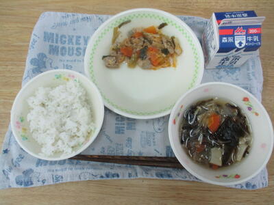 今日の給食は「わかめスープ、中華丼、春雨の酢の物」でした。今日の献立には24種類もの食材が使われているそうです。いろいろな食材に出会えるのも、給食のよいところですね。ごちそうさまでした。