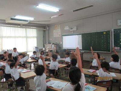 今朝は夏休み前の最後のPTA読み聞かせでした。どの教室も食い入るように絵本の挿絵を見つめる子どもたちの姿がありました。2冊、3冊と選んでくださっているので、楽しさが広がります。紙芝居を持ってきてくださった方や、親子で読み聞かせをしてくださった方もおられました。アイデア豊かにありがとうございました。