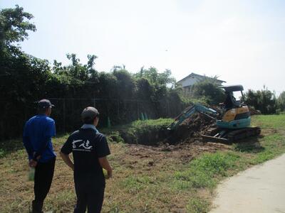 あさって24日の美化作業を前に、草捨て場周辺の草を学童の先生が刈り取ってくださって、学童のお友達が集めてくれました。いつもありがとうございます。また、事前に確認にこられたPTA役員さんが草を捨てる穴を大きくする必要があると判断され、本日午後、重機を持ってきて作業をしてくださいました。佐﨑さん、奥村さん、ありがとうございました。24日は、天気の心配はなさそうです。熊手等、作業をする道具が不足していますので、ご面倒ですがご持参いただけますとありがたいです。大変お世話になります。