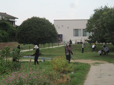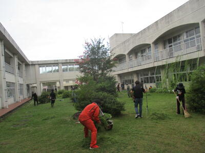 昨日は、早朝から保護者の皆様のご協力をいただき、除草作業を行うことができました。ありがとうございました。夏季休業中に職員で少しずつ作業をしていましたが、手が届いていないところが多く、大変ご苦労をおかけしました。大きく伸びた草をいっきに刈り取っていただいたおかげで、見違えるほど美しくなりました。本当にありがとうございました。私たちも、今日、明日、学校再開の準備を進めます。子どもたちとの再会が楽しみです。
