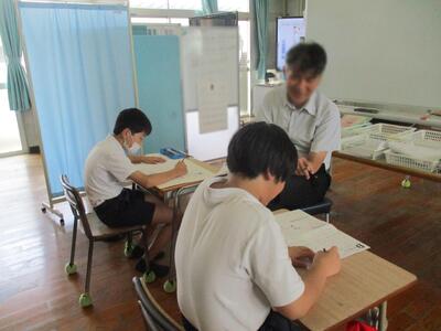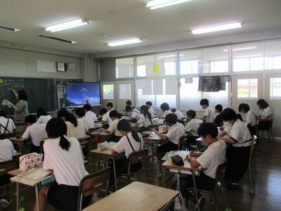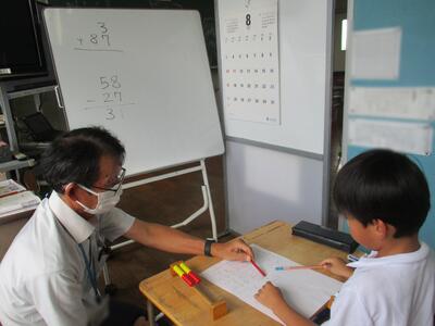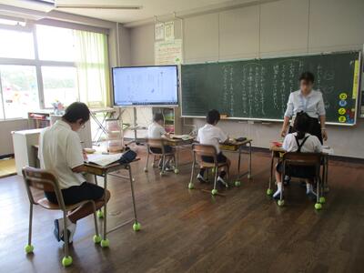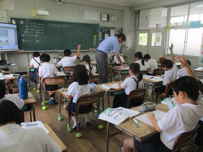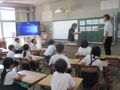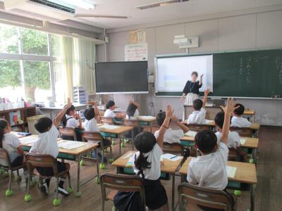 前期後半のはじまりの日。久しぶりにみんなに会えて、子どもたちはとても嬉しそうでした。夏休みの課題を提出し、夏休みの思い出をゲーム形式で語り合ったり、こんな学級を目指そうと先生の熱い語りがあったり、さっそく教科書を使って学習したり。どの教室も、子どもたちの「にこにこ・はきはき・こつこつ」の姿が見られました。