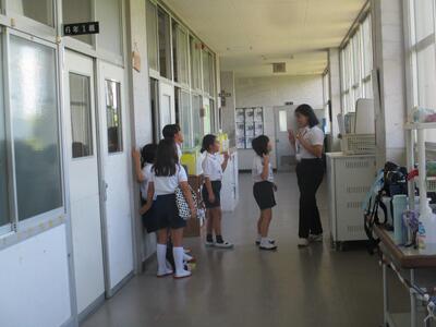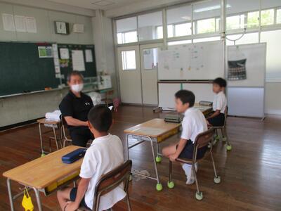 まだまだ残暑が残るなかですが、元気な子どもたちの声が学校中に響き渡りました。大きな事故やけがの報告なく、前期後半をこうして迎えることができることを、心から有り難く思います。再開初日、数人の欠席がありましたが、地域の人や家族に見守られ、子どもたちは元気に歩いて登校してくれました。