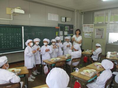 今日の給食は「担々春雨スープ、ベストサンド、甘夏サラダ、コッペパン」でした。みんなで食べる給食は、とても美味しいです。今日はいろいろな教室で、夏休み中にお誕生日が来た人のお祝いの牛乳カンパイがあっていました。私もお祝いしてもらってとても嬉しかったです。子どもたちの優しい気持ちに、本当に幸せいっぱいの日になりました。みなさん、ありがとう!